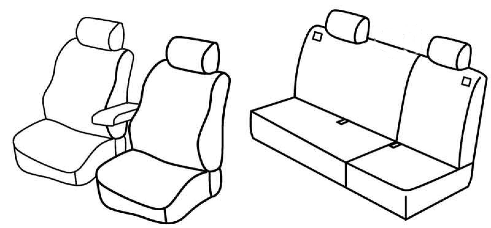 prednja sjedala obična, stražnji naslon i sjedalo djeljivi 2/3+1/3, 4 naslona za glavu, prednji naslon ruke konzolni (nije vezan za naslon sjedala)