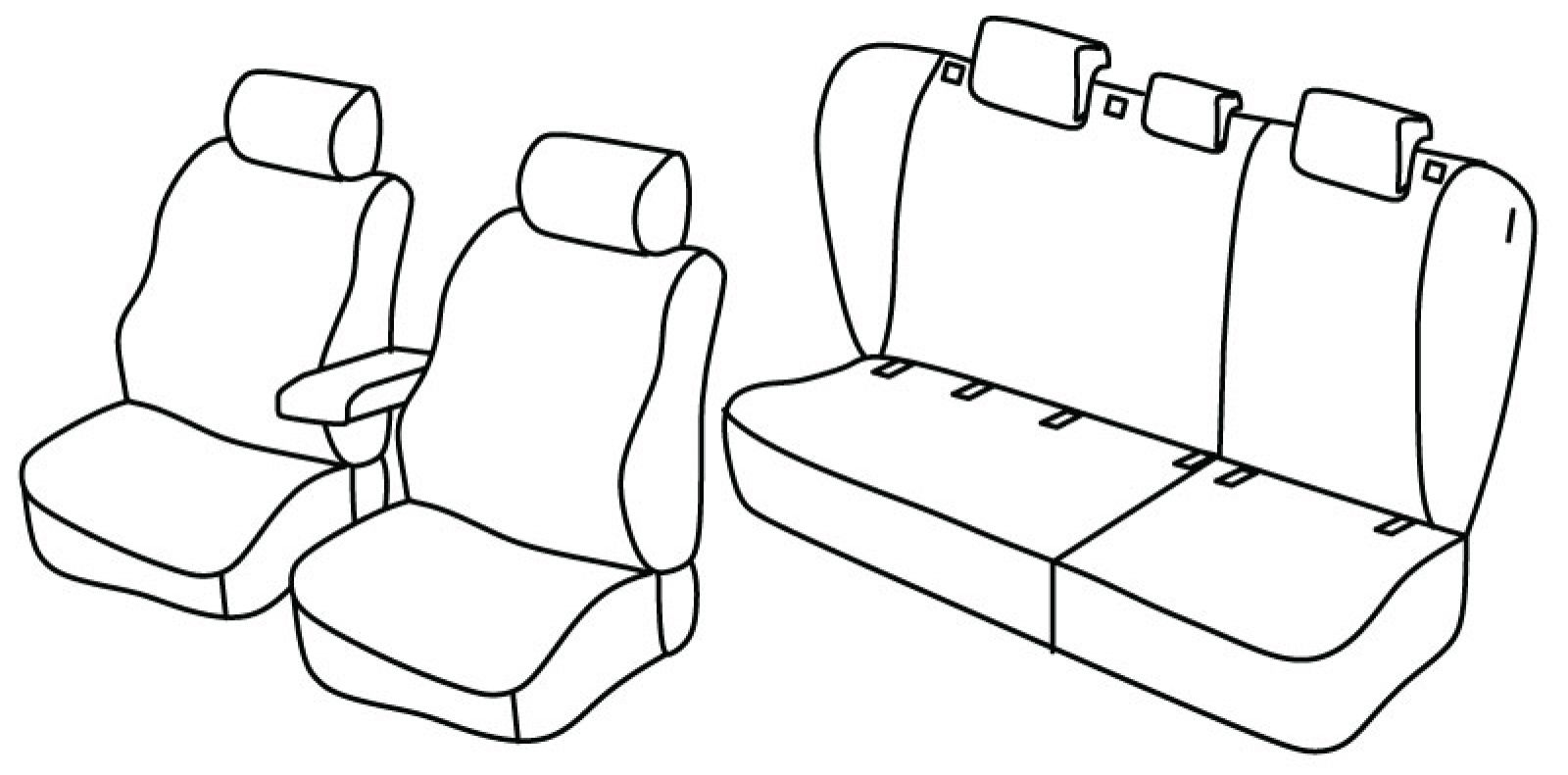 prednja sjedala obična, stražnji naslon i sjedalo djeljivi 2/3+1/3, airbag, bočni stupići, isofix povezan s presvlakom, prednji naslon ruke konzolni (nije vezan za naslon sjedala), treći (srednji) pojas izlazi iz naslona