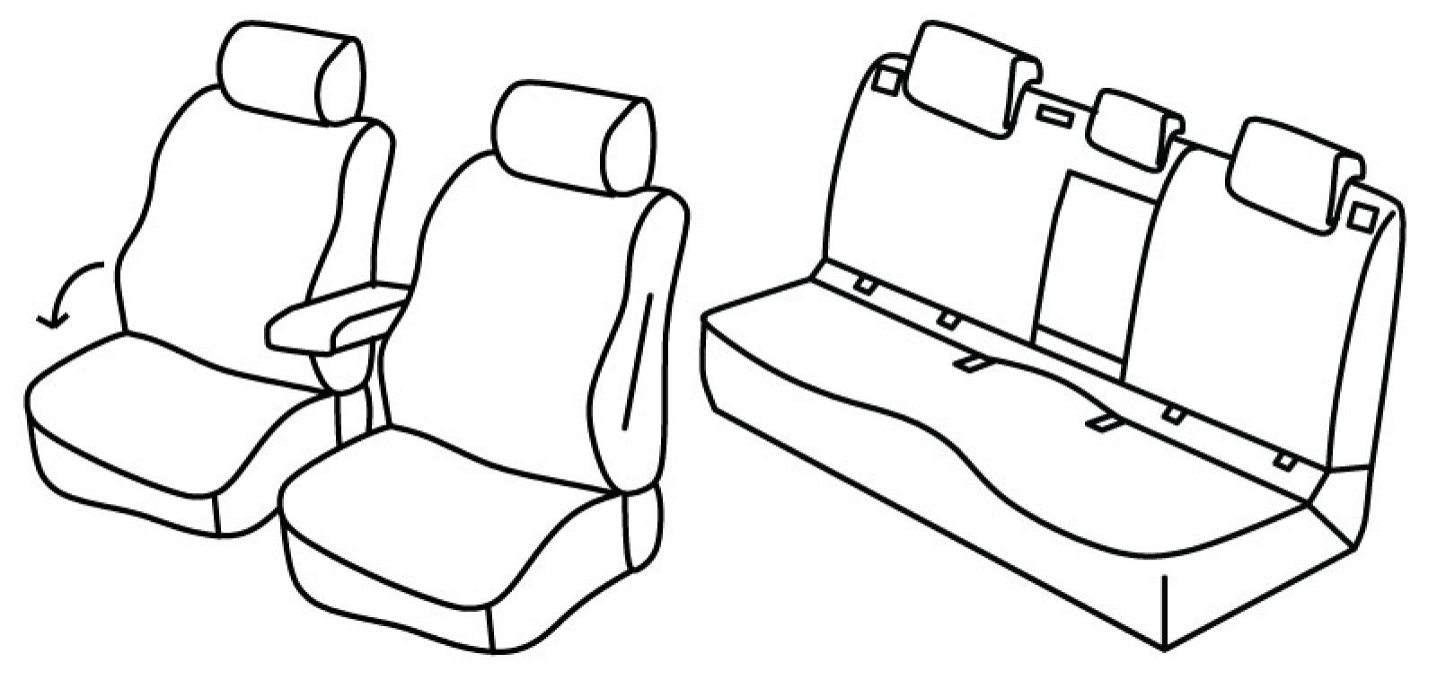 prednja sjedala obična, suvozačev naslon se preklapa, airbag, prednji nasloni za glavu su normalni, prednji naslon ruke konzolni (nije vezan za naslon sjedala), stražnje sjedalo u komadu, isofix povezan s presvlakom, stražnji naslon djeljiv 2/3+1/3, u stražnjem naslonu za ruku integrirani držač za čaše, treći (srednji) pojas izlazi iz naslona, stražnji nasloni za glavu su utopni
