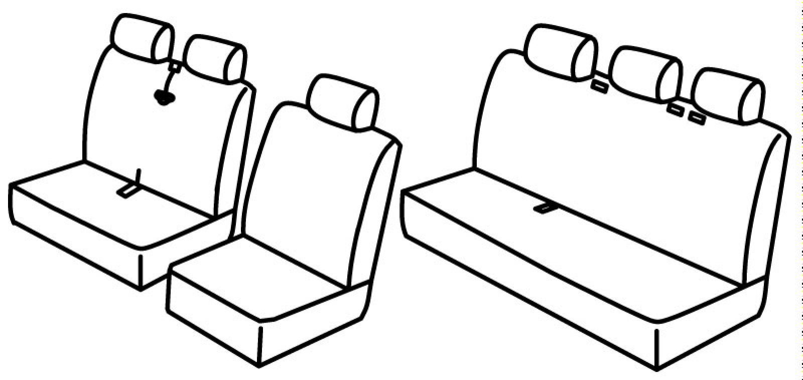 1. red: 1+2, vozačevo sjedalo je obično, dupli naslon i sjedalo u komadu, pojas na sredini gornjeg dijela suvozačevog naslona, stražnji naslon i sjedalo u komadu, nasloni za glavu su normalni, 3 pojasa na stražnjem naslonu