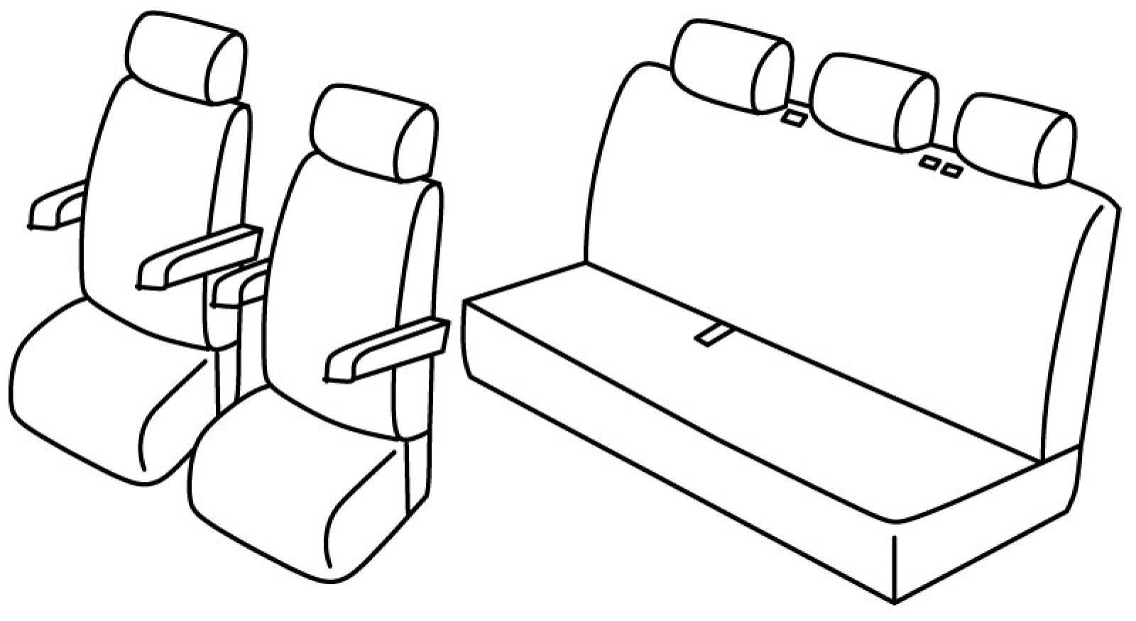 prednja sjedala obična, prednji nasloni za glavu su normalni, 4 prednja naslona ruke vezana za naslone sjedala, stražnji naslon i sjedalo u komadu, 3 pojasa na stražnjem naslonu, stražnji nasloni za glavu su normalni