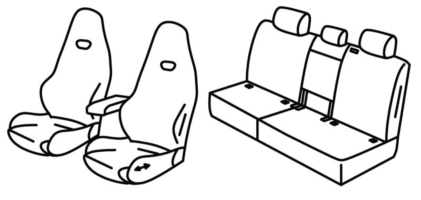 prednja sjedala avionska, vozačevo sjedalo ima izvlačni dio ali se presvlaka može postaviti samo na potpuno uvučeno sjedalo, prednji naslon ruke konzolni (nije vezan za naslon sjedala), 3 airbaga (sa vanjske strane prednjih naslona i na vozačevom naslonu sa unutarnje strane), isofix na suvozačevom sjedalu, stražnji naslon djeljiv 1/3+1/3+1/3, stražnje sjedalo djeljivo 1/3+2/3, stražnji naslon ruke, airbag na stražnjim naslonima, isofix, treći (srednji) pojas izlazi iz naslona