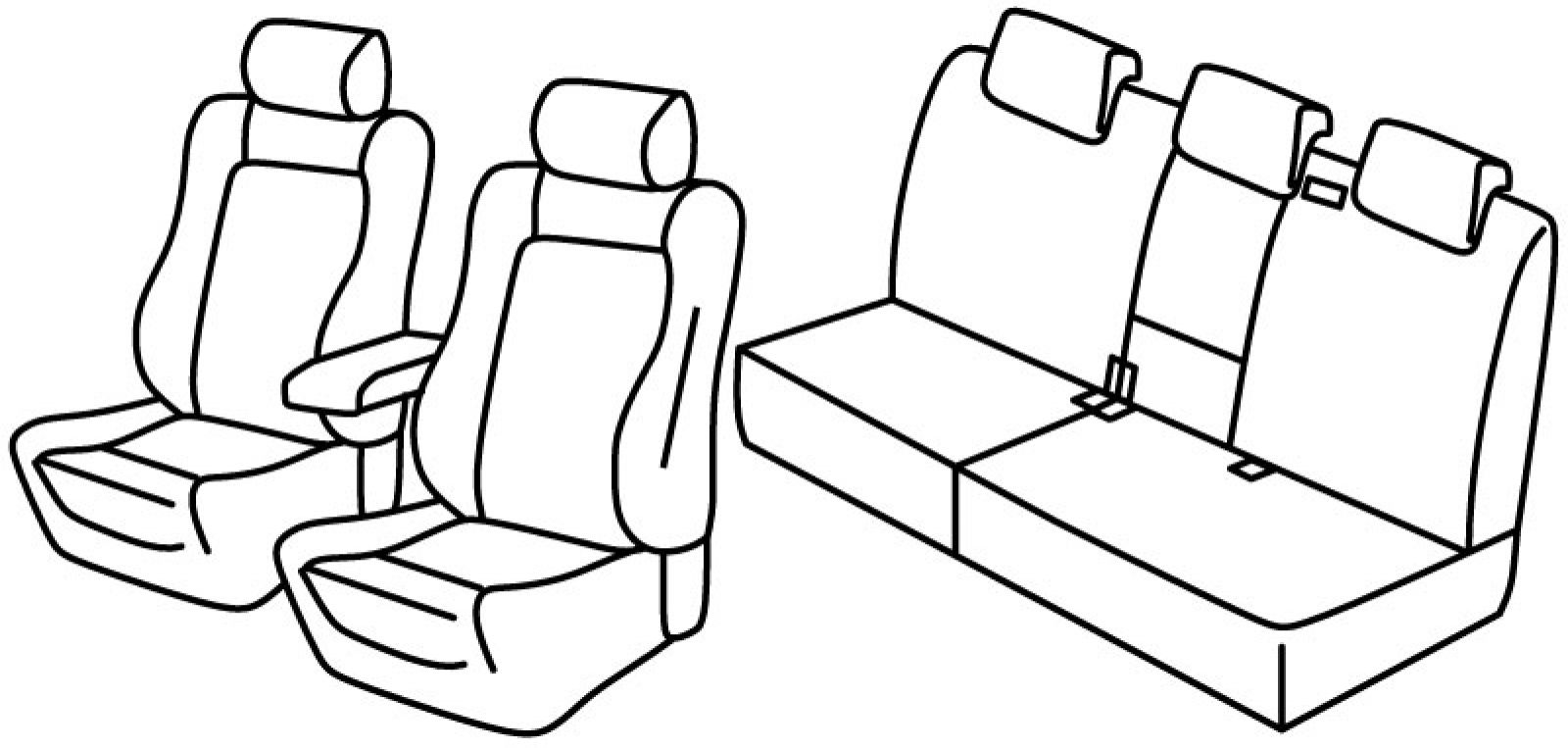 prednja sjedala sportska, airbag, na poleđini prednjih naslona su plastični sklopivi stolići, prednji nasloni za glavu su normalni, prednji naslon ruke konzolni (nije vezan za naslon sjedala), stražnji naslon i sjedalo djeljivi 1/3+2/3, treći (srednji) pojas izlazi iz naslona, stražnji nasloni za glavu su utopni, srednji naslon glave preklapa se zajedno sa stražnjim naslonom ruke