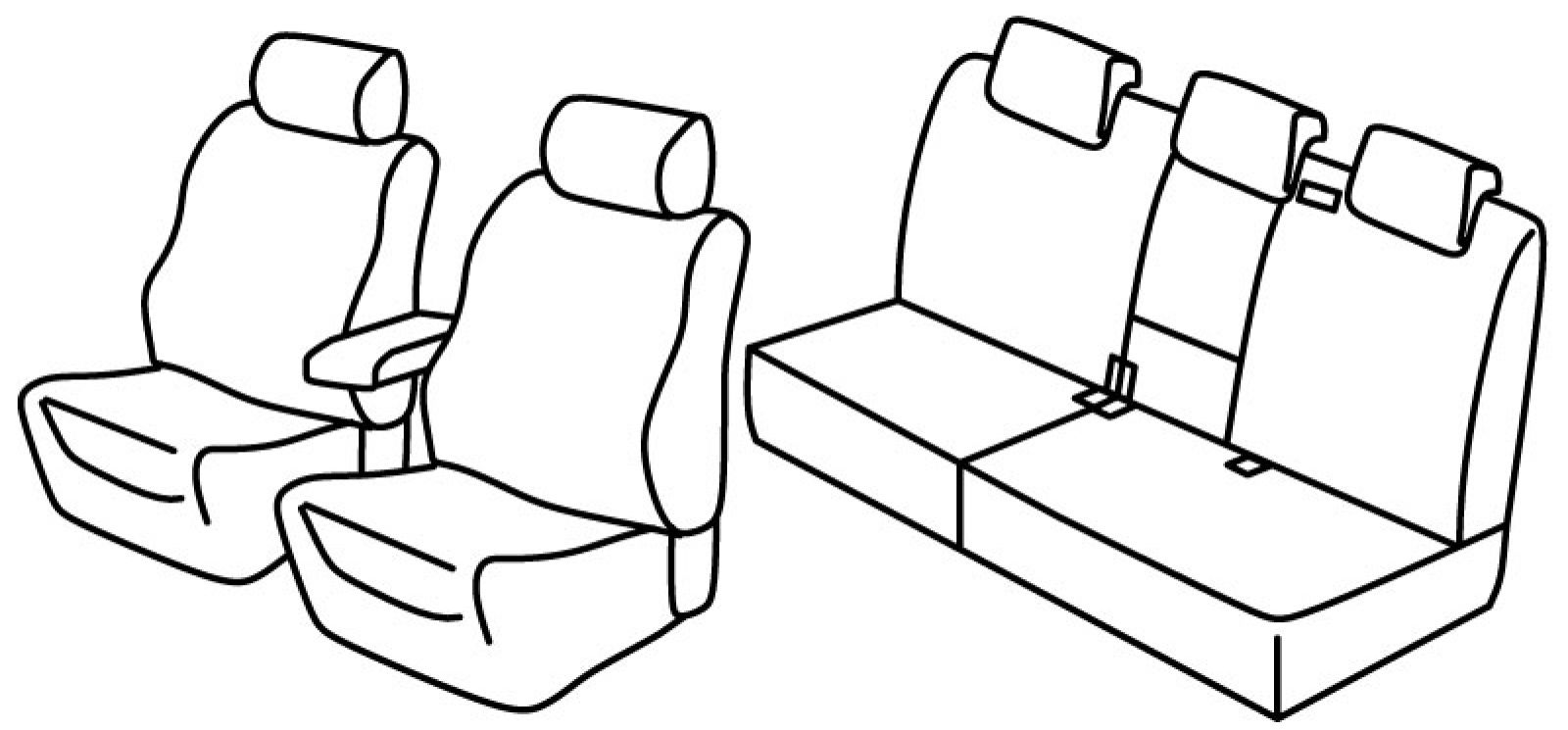 prednja sjedala obična, airbag, prednji nasloni za glavu su normalni, prednji naslon ruke konzolni (nije vezan za naslon sjedala), stražnji naslon i sjedalo djeljivi 1/3+2/3, treći (srednji) pojas izlazi iz naslona, stražnji nasloni za glavu su utopni, srednji naslon glave preklapa se zajedno sa stražnjim naslonom ruke