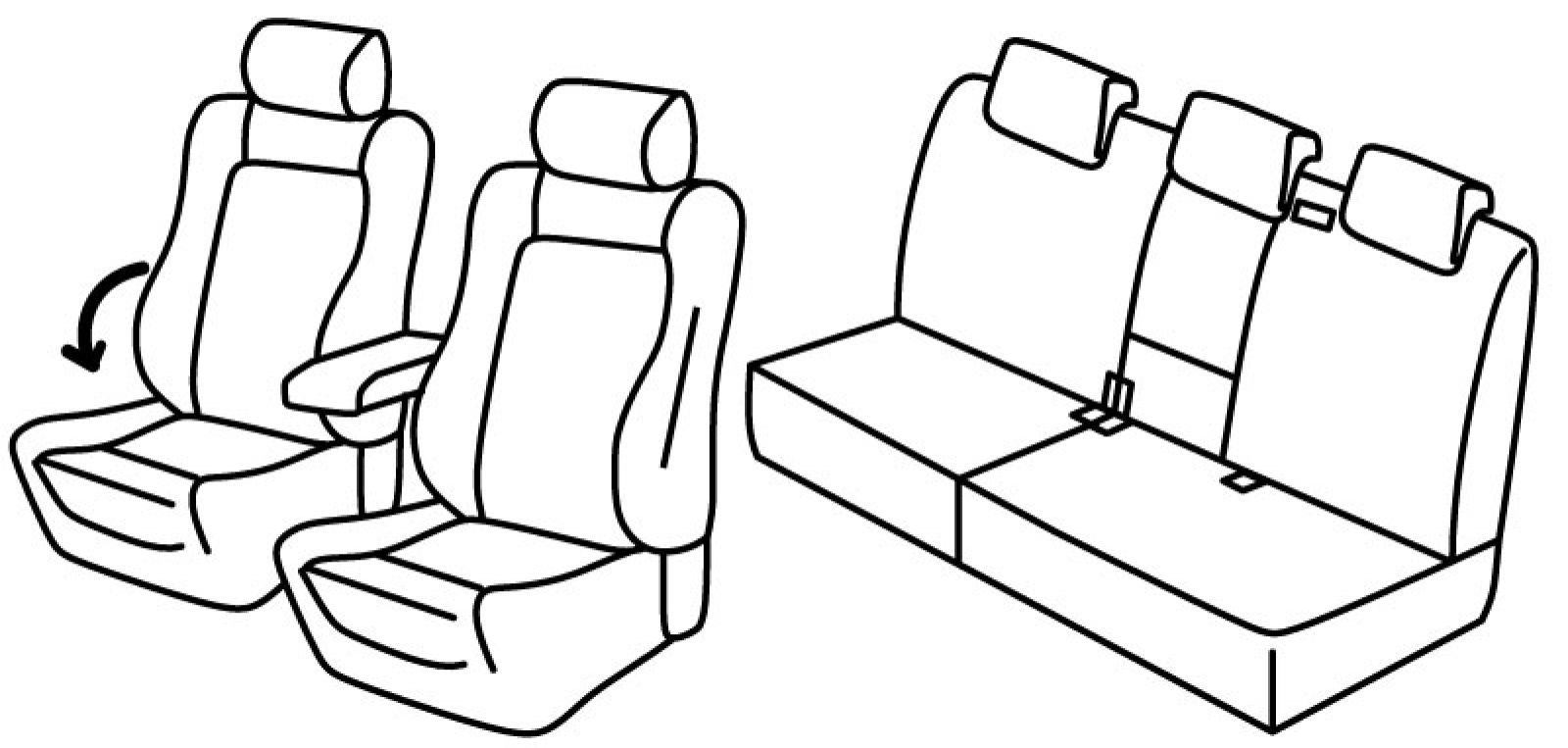 prednja sjedala sportska, airbag, na poleđini prednjih naslona su plastični sklopivi stolići, suvozačev naslon se preklapa, prednji nasloni glave mogu biti u dvije različite veličine (obje verzije su uključene u komplet), prednji naslon ruke konzolni (nije vezan za naslon sjedala), stražnji naslon i sjedalo djeljivi 1/3+2/3, treći (srednji) pojas izlazi iz naslona, stražnji nasloni za glavu su utopni, srednji naslon glave preklapa se zajedno sa stražnjim naslonom ruke