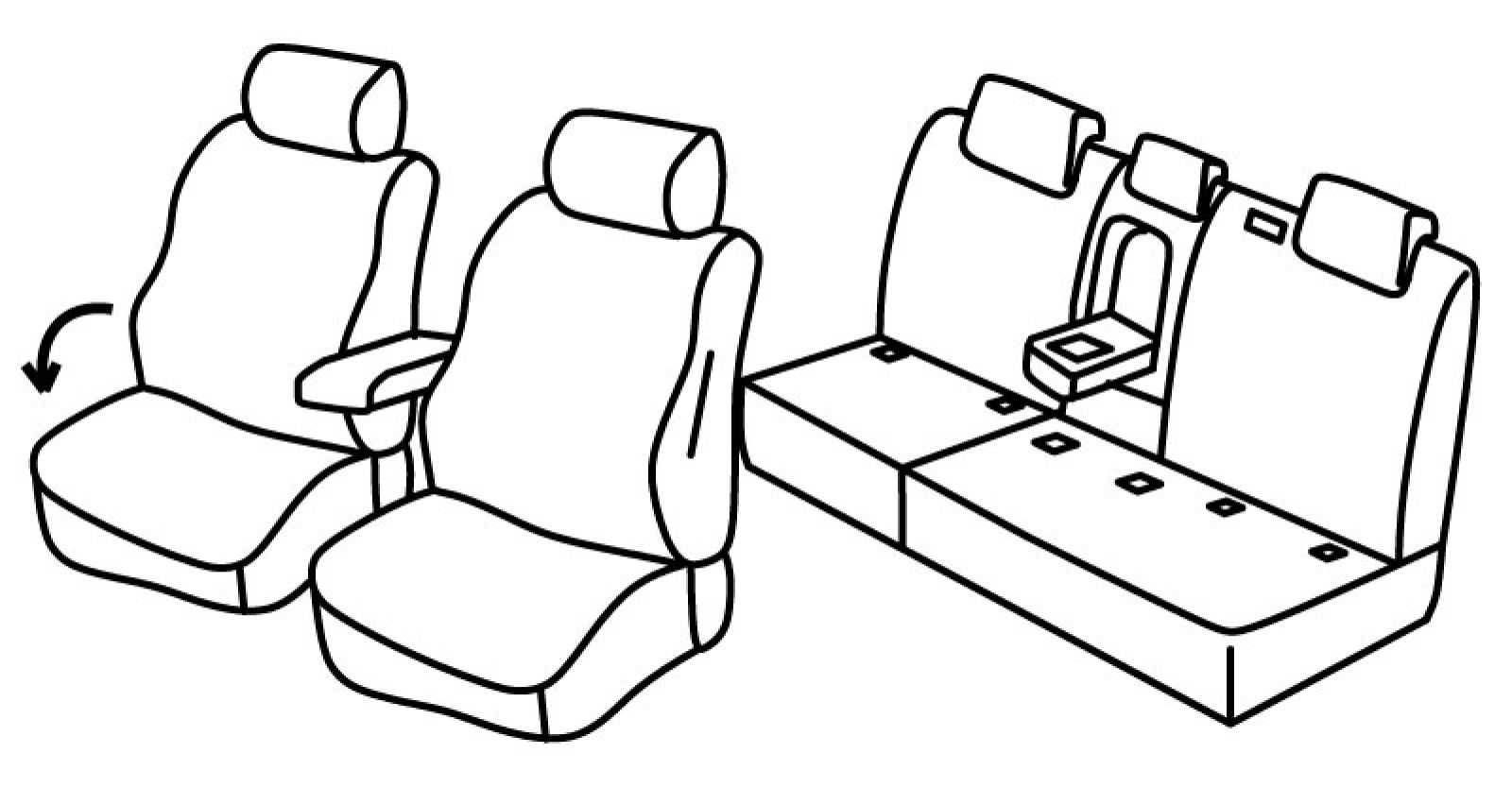 prednja sjedala obična, na poleđini prednjih naslona su plastični sklopivi stolići, prednji nasloni za glavu su aktivni, airbag, suvozačev naslon se preklapa u stolić za vozača, isofix, prednji naslon ruke, treći (srednji) pojas izlazi iz naslona, stražnji naslon djeljiv 1/3+1/3+1/3, stražnje sjedalo djeljivo 1/3+2/3, stražnji naslon ruke