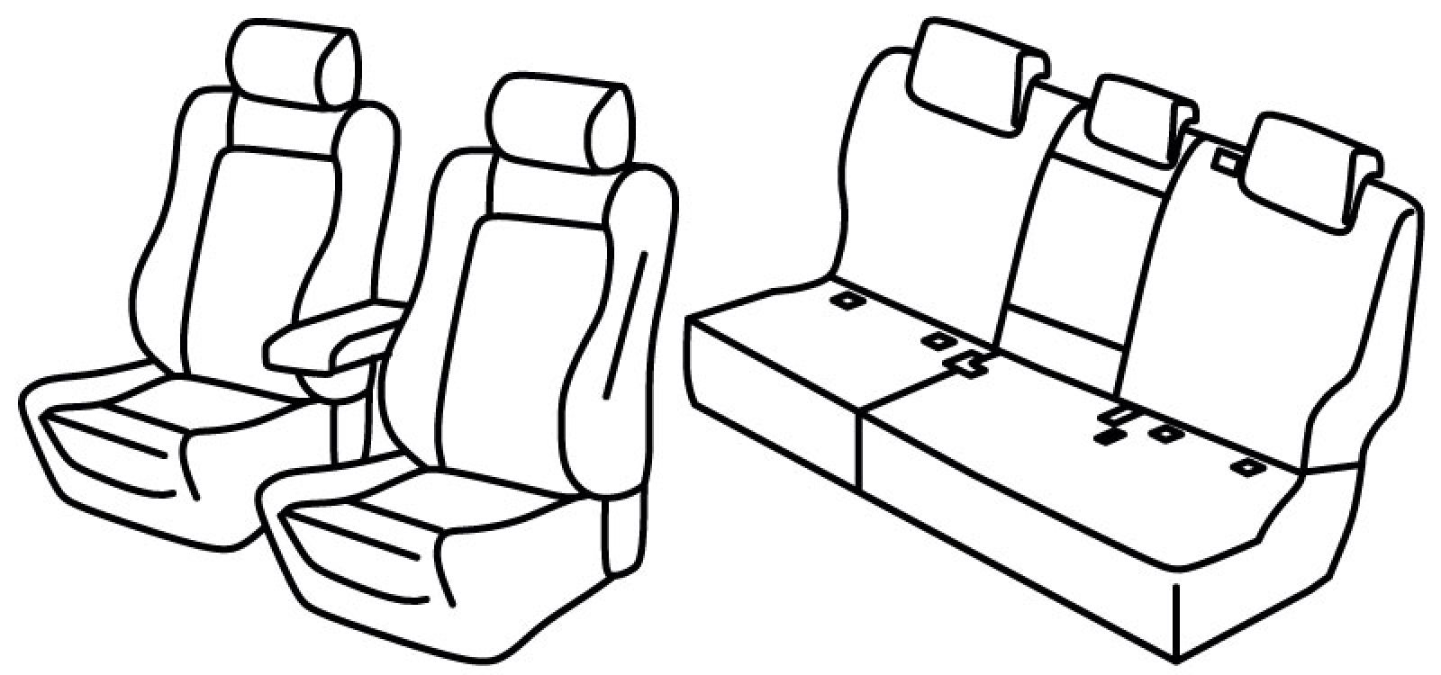 prednja sjedala profilirana, prednji nasloni za glavu su aktivni, prednji naslon ruke konzolni (nije vezan za naslon sjedala), airbag, stražnji naslon djeljiv 1/3+1/3+1/3, stražnje sjedalo djeljivo 1/3+2/3, treći (srednji) pojas izlazi iz naslona, stražnji naslon ruke, isofix povezan s presvlakom, stražnji nasloni za glavu su utopni (2+1)