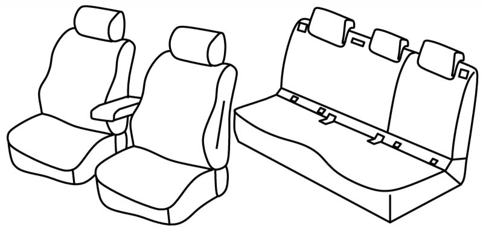 prednja sjedala obična, airbag, poleđina prednjih naslona od plastike, prednji nasloni za glavu su normalni, prednji naslon ruke konzolni (nije vezan za naslon sjedala), stražnji naslon djeljiv 2/3+1/3, stražnje sjedalo u komadu, isofix povezan s presvlakom, treći (srednji) pojas izlazi iz naslona, stražnji rubni nasloni za glavu su aktivni, stražnji srednji naslon za glavu je utopni